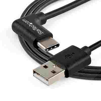 1m (3.3ft) USB-A to USB-C Charging Cable, Charge & Sync, USB A to USB C Data Cord, Right-Angled USB Type-C, M/M, Black