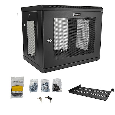 The 9U network cabinet features a removable and reversible front door and removable side panels, each with quick-release mechanisms, so you can easily access your equipment. Plus, each door and panel on this rack features an independent lock, ensuring your equipment is secure. The wall-mount server rack also includes all of the cage nuts and mounting screws you’ll need to fill the rack with equipment, saving you the time, hassle and cost of sourcing mounting hardware.