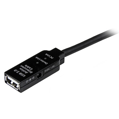 The USB2AAEXT5M 5m Active USB 2.0 Extension Cable offers one USB-A male connector and one USB-A female connector, and provides an active extension of USB 2.0 devices of up to 5-meters (15-feet).An all-in-one cable for overcoming distance restrictions as well as power source limitations, the active USB 2.0 extension cable incorporates bus-powered active circuitry to ensure performance beyond the length limits of standard USB cables. Plus you can daisy chain 4 cables for a total USB extension of up to 20-meters.If necessary, the cable can be powered from a wall outlet using the Universal AC power adapter that was provided with the cable – this will allow you to use USB bus-powered devices that may require extra power.