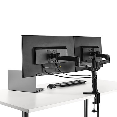 For added installation flexibility, the included mounting hardware can either clamp to the side of your desk / table or mount through a grommet hole, for a versatile dual-monitor mounting solution.
