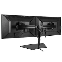 - Maximize desk space by mounting both of your monitors on a single base