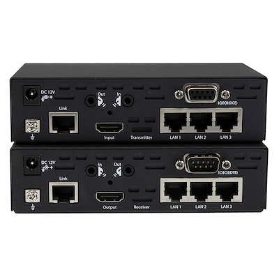 The extender offers HDBaseT technology with HDMI, IR, RS232, Ethernet, and power in a single extender kit, for complete end-to-end control. Offering greater versatility than traditional HDMI extenders or HDMI cabling alone HDBaseT is the clear choice for every integrator and system designer. The IR extension enables you to operate your display and an IR-enabled source device, such as a Blu-ray player or TV Set top box, from either end of your extension. RS232 control let you to connect a serial I/O device at your display – an ideal solution for adding a serial touch screen interface to your remote display for interactive digital signage presentations. While the built-in 6-Port Ethernet hub lets you connect 5 IP devices to your network (3 remote, 2 local).