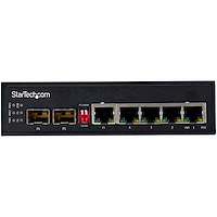 • FIBER & PoE: Industrial 6 Port Gigabit Ethernet Switch IEEE 802.3af (PoE) or 802.3at (PoE+) 30W max per 4 x PoE ports PSE + 2 x open SFP slots | Use with devices like cameras, sensors, wi-fi APs