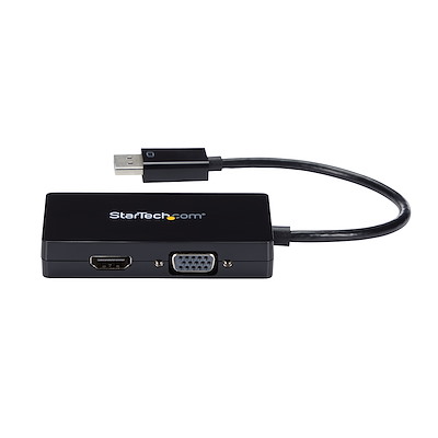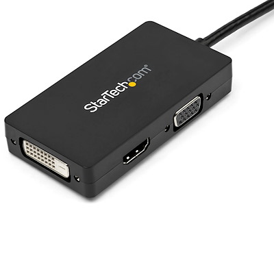 The DP2VGDVHD DisplayPort to VGA, DVI or HDMI converter offers a compact 3-in-1 solution for connecting your DP-equipped  desktop, laptop or Ultrabook™ computer to a VGA, DVI, or HDMI display.Compatible with almost any display, television or projector, this versatile converter provides the ideal plug-and-play solution for travel or BYOD (Bring Your Own Device) applications around the office. With three of the most common interfaces to choose from, the converter equips you to walk into any boardroom ready to connect to an available display device, even if you don’t know what connection ports will be available.